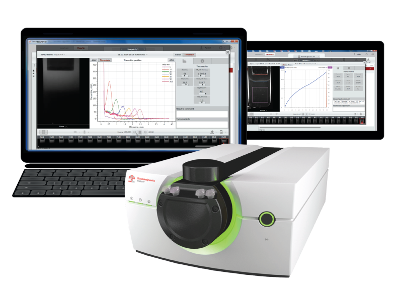 Набор для исследования фибринолиза на системе лабораторной «Анализатор тромбодинамики Т2», Вариант - TDL предназначен для количественного определения параметров тромбодинамики в режиме фибринолиза в плазме крови. Процесс свертывания запускается локализованным активатором свертывания в условиях, близких к условиям свертывания крови in vivo